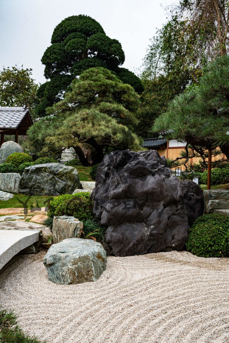 このお客様は日本を何度も訪れ、多くの日本庭園を鑑賞されています。特に、京都にある二条城の庭と足立美術館の庭がお気に入りです。そこで、二条城の庭にある七つの銘石に倣い、ベトナムで縁起が良いとされる数字の九にちなんで、九つの銘石を日本から輸入し九石庭園を造りました。