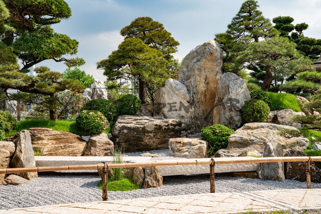 蓬莱山は、古代中国の伝説において不老不死の仙人が住むとされる神秘的な山であり、古くから日本庭園で用いられてきた蓬莱式庭園という伝統的な手法です。この山を模した景石は、庭園に深みと歴史的な風水的な意味合いを加えています。さらに、日本の精緻な庭園デザインと技術を駆使し、自然の美しさと調和を追求しました。